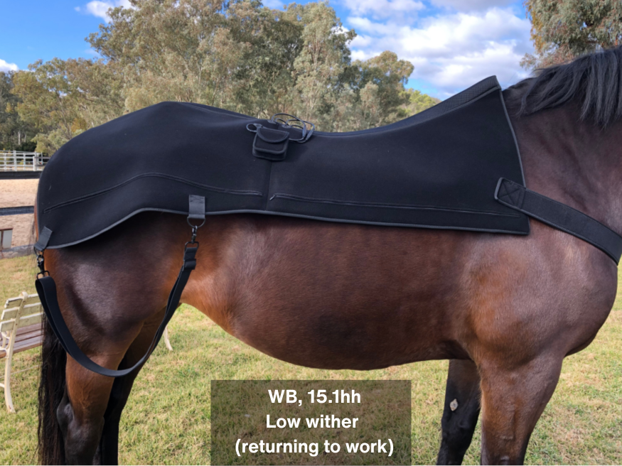 This pad is recommended for horses 15 hands and over. It is well suited to horses with medium to high withers.